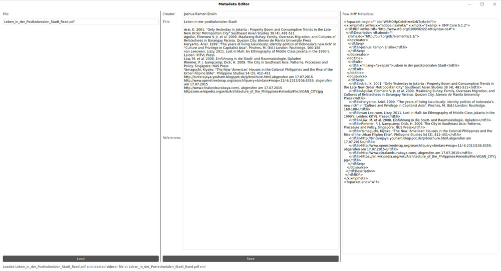 Perhaps the most important development on my side since my initial post on the issue, I wrote a small tool that writes and reads references from and to the XMP metadata of a file. One of my earliest ideas was to create a framework to have references available with media files in a machine-readable way. Even in my previous post, I already hailed the concept of shownotes for podcast episodes. This is essentially what I was looking for.